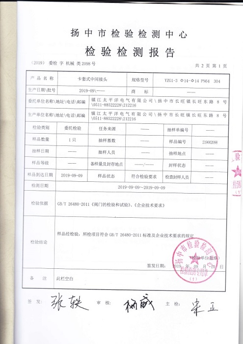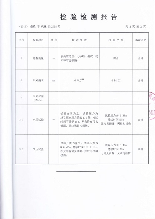 儀表管閥件產品檢測報告