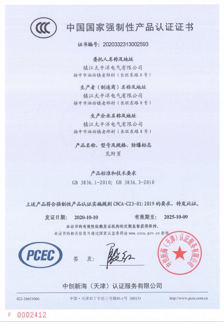 中國國家強製性產品認證證書