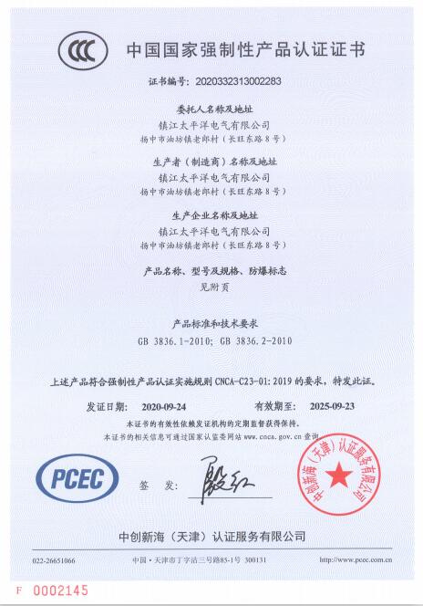 中國國家強製性產品認證證書